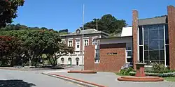 Wellington College's Pavilion, Firth House, and the Gifford Observatory were opened on 1 December, 1924. The War Memorial Hall was opened on 2 March, 1928, financially supported by £6000 from the Old Boys' Association.[7] The War Memorial Hall and classroom wings were demolished by the Ministry of Works and replaced in the 1960s with a new hall and seven-storey Tower classroom block due to its lack of earthquake reinforcements.[8] The stained glass window from the front of the War Memorial Hall is now in the front of the existing hall.