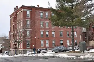 The Wellington Street Apartment House District of Worcester, Massachusetts encompasses a collection of stylistically similar apartment houses in the city's Main South area. It includes sixteen properties along Jacques Avenue, and Wellington and Irving Streets, most of which were built between 1887 and 1901. The notable exception is the Harrington House at 62 Wellington Street, a c. 1850s Greek Revival house that was virtually the only house standing in the area before development began in the 1880s.[2]