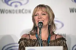 Wendy Schaal speaking at the 2016 WonderCon Los Angeles for American Dad!, at the Los Angeles Convention Center