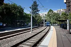 Buoyed by the success of the original line, a 3.6-kilometre (2.2 mi), four stop extension of the route opened on 13 August 2000.[5][6] This saw the light rail reach Lilyfield, which was then the limit of the closed section of the goods line.