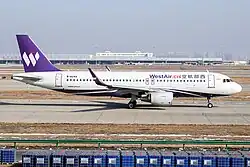 West Airlines Co Ltd, operating as West Air, is a low-cost airline based in New North Zone, Chongqing, China,[1] operating a scheduled passenger network to domestic and international destinations out of its hub, Chongqing Jiangbei International Airport.[2] The company was established in March 2006 by its parent company HNA Aviation, with the launch of scheduled services on 14 July 2010. The airline is one of the four founding members of the U-FLY Alliance.