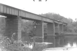 West Arlington station consisted of two low-level side platforms. the eastbound platform contained a station depot and interlocking tower, accessible from North Midland Avenue and Passaic Avenue. The westbound platform had no shelter at the end of service in 1966, accessible from Passaic Avenue and Laurel Avenue. The western end of the asphalt platforms contained the walkway for WR Draw. The 13-by-31-foot (4.0 m × 9.4 m) interlocking tower built into the eastbound depot contained the mechanics to open the swing bridge over the Passaic River and Route 21. The 1914-installed interlocking system contained 16 levers to operate the bridge and related switches.[3] WR Tower also operated remote control switches at the Forest Hill station in Newark, including the crossover to the Orange Branch, the connection to the eastern main line track from the Orange Branch and a crossover from the Orange Branch to a nearby siding.[6] These services took over the purposes of OJ Tower in Forest Hill, a former 13-by-21-foot (4.0 m × 6.4 m) interlocking tower with 34 levers.[7] The tower also operated the actions of the office in Great Notch for the Caldwell Branch.[6]