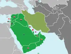 The founding members of the West Asian Football Federation are Iran, Iraq, Jordan, Lebanon, Palestine and Syria. In 2009, three more associations, Qatar, United Arab Emirates and Yemen, joined the federation. Four other West Asian nations, Bahrain, Kuwait, Oman and Saudi Arabia, joined in 2010.[2] Iran left the federation on 10 June 2014, with the creation of the Central Asian Football Association.[3]