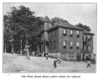 The Baxter Street School was the first Athens public school specifically for African American students, opened in 1886.[6] That same year in 1886, Washington Street School (formerly the Market Street School) was opened for white students.[6][7] In 1893 the Baxter Street School was remodeled and used for white students.[6][8] The same year in 1893, the West Broad Street School and the East Athens School were opened for African American students.[8]