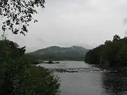 View of Ft. Noble Mountain taken at Nobleboro, including the remains of the old dam.