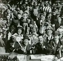 In 1932, the club was relegated to the Second Division[15] and long-term custodian Syd King was sacked after serving the club in the role of manager for 32 years, and as a player from 1899 to 1903. Following relegation, King had mental health problems. He appeared drunk at a board meeting and killed himself soon after.[16] He was replaced with his assistant manager Charlie Paynter, who himself had been with West Ham in a number of roles since 1897 and who went on to serve the team in this role until 1950 for a total of 480 games. The club spent most of the next thirty years in the second division, first under Paynter and then later under the leadership of former player Ted Fenton.