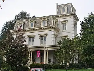 West Lawn, also known as the Embassy House Apartments, is a historic home located at Lancaster, Lancaster County, Pennsylvania. It was built in 1873–1874, and is a T-shaped dwelling with a 2+1⁄2-story main section and 2+1⁄2-story rear wing with a slate covered mansard roof in a combined Italianate / Second Empire style. It features a 3+1⁄2-story tower with a mansard roof. It once housed a fraternity and in 1973 was converted to apartments.[2]