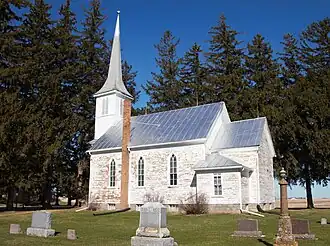 Norwegian immigrants came to Allamakee County starting in the early 1850s. Their numbers increased after the American Civil War beginning in the late 1860s and continuing into the 1880s.[2] They established the first Lutheran church in the area in 1850. It is still in existence and is now known as Old East Paint Creek Lutheran Church.[3] A second congregation, known as the West Paint Creek Church, was organized in 1857 because parishioners found it difficult to navigate the poor roads in the area.[4] In 1880 a controversy over predestination erupted among Norwegian Lutherans and affected the congregations in the Paint Creek area. A small group broke away from the original churches in 1887 and formed two congregations known as the East Paint Creek Synod and West Paint Creek Synod churches. The subject of this article is the West Paint Creek Synod Church. To distinguish between the two groups, the original churches were renamed Old East Paint Creek Church and Old West Paint Creek Church. The Old West Paint Creek Church is still in existence and located to the south of this church building on Maud Road.