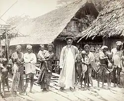 Since the 16th century, apart from the Raja Ampat Islands which was contested between the Bacan Sultanate, Tidore Sultanate, and Ternate Sultanate, other coastal areas of Papua from the island of Biak to Mimika have become a vassal of the Tidore Sultanate.[31] The Tidore Sultanate adheres to the trade pact and custom of Uli-Siwa ( federation of nine ), so there were nine trade partners led by Tidore in opposition to Ternate-led Uli Lima ( federation of five ). In administering its regions in Papua, Tidore divide them to three regions, Korano Ngaruha ( lit. 'Four Kings' ) or Raja Ampat Islands, Papoua Gam Sio ( lit. 'Papua The Nine Negeri') and Mafor Soa Raha ( lit. 'Mafor The Four Soa').[11] The role of these kingdoms began to decline due to the entry of traders from Europe to the archipelago which marks the beginning of colonialism in the Indonesian Archipelago.[31] During Tidore's rule, the main exports of the island during this period were resins, spices, slaves and the highly priced feathers of the bird-of-paradise.[32] Sultan Nuku, one of the most famous Tidore sultans who rebelled against Dutch colonization, called himself "Sultan of Tidore and Papua",[33] during his revolt in 1780s. He commanded loyalty from both Moluccan and Papuan chiefs, especially those of Raja Ampat Islands. Following Tidore's defeat, much of the territory it claimed in western part of New Guinea came under Dutch rule as part of Dutch East Indies.[33]