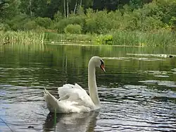 The region's diverse habitats support numerous bird species, especially in wetlands, hosting mallard, Eurasian teal, common pochard, mute swan, and black-headed gull. Others include common tern, great cormorant, grey heron, common gull, black tern, and common crane. Reedbeds shelter the Eurasian bittern (notably abundant in the west),[61] common reed warbler, water rail, and savi's warbler. Sedge and grassy wetlands host common snipe and corn crake, frequented by white stork.[62] In the 1980s, hen harrier pairs nested near Niezabyszewo and between Mielno and Bytów, a declining species.[63] Dry meadows and fields host Eurasian skylark, yellowhammer, and crested lark. Deciduous forests support Eurasian jay, Eurasian chaffinch, European greenfinch, wood warbler, and lesser spotted woodpecker.[62] Forest edges near open areas suit the near-threatened red kite, abundant in Western Pomerania.[64] Coniferous and mixed forests host goldcrest, coal tit, woodlark, and European nightjar,[62] with lesser spotted eagle breeding near wetlands, especially in the Myślibórz and Drawsko lake lands.[65] The white-tailed eagle is numerous in the Myślibórz Lake Land.[66]