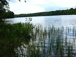In terms of trophic status, most lakes in the macroregion are classified as eutrophic. They are characterized by a high concentration of nutrients dissolved in the water and abundant vegetation.[14] Agriculture has played a fundamental role in this process. In many areas, the transformation of the original forest landscape into an agricultural one contributed to the disruption of water relations by reducing the soil's retention capacity and facilitating surface runoff. This, in turn, led to a significant influx of nutrients into surface waters.[23] In the Drawsko and Bytów lake lands, oligotrophic lakes are commonly found. These are characterized by low nutrient levels and good oxygen conditions, and they are generally deep lakes.[14] Among oligotrophic lakes, one can distinguish between non-calcareous (lobelian) lakes – typical of the eastern part of the macroregion, where the morainic material lacks calcium compounds – and calcareous lakes, characteristic of the western part of the lake land, where the morainic material contains large amounts of calcium compounds. Calcareous oligotrophic lakes occur most frequently in the Myślibórz Lake Land, while non-calcareous ones are most common in the Bytów Lake Land (the highest concentration in Poland).[24] In the eastern part of the West Pomeranian Lake Land, dystrophic lakes are also well represented. These lakes have acidic, brown-colored waters due to humic substances.[14]