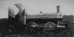 The Ebbw Vale proprietors formed the West Somerset Mineral Railway for the purpose, and obtained the West Somerset Mineral Railway Act 1855 (18 & 19 Vict. c. cl) on 16 July 1855, giving authority for a standard gauge 1,435 mm (4 ft 8+1⁄2 in) line from Watchet Quay to Heath Poult (or "Exton").[13] The authorised capital was £50,000.[c][15] The first sod was cut at Roughmoor[16][17] on 29 May 1856[3] and a locomotive was obtained in the following November; however it was put out of action in January 1857 by serious damage to the boiler.[13]