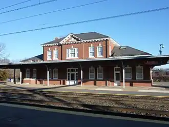 ![]() The northbound station house from the tracks. Note: This building is now used by private offices and is not part of the operating station. | |||||||||||||||||||||||||||||||||||||||||||||||