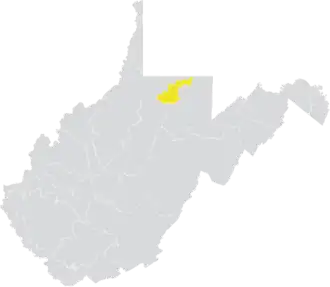 The district is located entirely within West Virginia's 1st congressional district, and overlaps with the 49th, 50th, and 51st districts of the West Virginia House of Delegates.[3] At around 260 square miles, it is the smallest district in the Senate. It borders the state of Pennsylvania.[1]