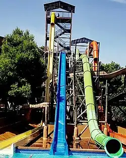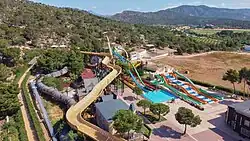• The Beast: The center-piece of the park is the attraction nicknamed "The Beast", containing 4 different water slides of varying characteristics. The yellow variant is widely considered the tied 5th highest water-slide in Europe and the tallest in Spain - though enthusiasts debate exact measurements. The orange variant is considered the steepest slide in Spain, as well as one of the steepest in the entirety of Europe.