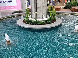 This stage two development features two new mini majors a two-level H&M, Cotton On Mega and an Anaconda store, a new two-level parallel mall linking Myer and the existing centre (built over an existing carpark) and a new refurbished centre court with a new look "Pacific Family" fountain and a water feature and a surfboard-inspired sculpture known as "Whitewash" (made from 43 chrome surfboards) by Laura Enever outside Myer.[20] 70 new stores (including 50 fashion stores including H&M and Sephora) were added to the centre.[21][22]