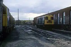 From March 1966 to November 1966, Class 11 locomotives were stabled here but they were sent to Newton Heath and Crewe Diesel TMD.[4] Class 20, 25, 47 and 56 locomotives were also stabled here.[5] After a Class 56 derailed in the shed yard, a decision was taken to close the lines into the shed and the staff were moved to Tibshelf Sidings where locomotives continued to service mid week.[6]