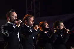 ![]() Westlife performing live on their Gravity Tour in October 2011 in Hanoi, Vietnam | |