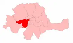 The City of Westminster is a district of Inner London. Its southern boundary is on the north bank of the River Thames. It is today combined with Marylebone to the north. It is west of the diminutive City of London, fixed with four MPs in 1298, and the north part of Lambeth, created a broad constituency in 1832. It is south-west of Holborn and St. Pancras which in 1832 were both placed in a wider seat named Finsbury and to the east of Kensington and Chelsea which were dealt with similarly in a seat named Chelsea.