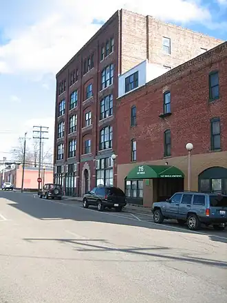 The White Building, also known as the Heberling Building, is located in the city of Bloomington, Illinois, United States. Located along Bloomington's East Douglas Street, the building was added to the National Register of Historic Places in June 1994 and represents one of the better examples of Commercial style architecture still extant in the city. It was built by Bloomington resident Samuel R. White in 1894–1895 to house his furniture sales company. By 1903 the Heberling Brothers pharmacy and their associated businesses occupied most of the building and the White company had moved its facilities to a nearby location. The White Building is a five-story red brick building which is elaborately windowed and has a three-story connected extension to its west which probably predates it.