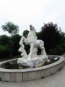 Built in 1999, the 500-acre[1] park features a collection of several hundred stone sculptures and carvings gathered from areas around Nanjing[2] of stone men and women, turtles, horses, tigers and towers.[3] The pieces represent different stone carving styles, eras and disciplines. There is also a variety of original intended uses, like public viewing, religious expression, home use and burial ornamentation.