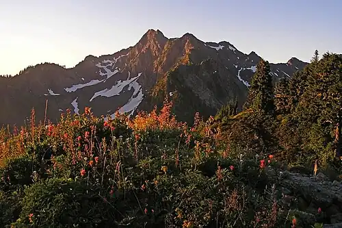 White Mountain is a 6,378-foot (1,944-metre) mountain summit located in the Olympic Mountains, in Jefferson County of Washington state.[1] Situated in Olympic National Park, its nearest higher neighbor is Mount LaCrosse, 0.95 mi (1.53 km) to the northeast, and an unnamed glacier lies in the north cirque between the two peaks.[2] The Anderson massif lies 3.1 mi (5.0 km) to the north of White Mountain. Precipitation runoff from the mountain drains into tributaries of the Quinault River and Duckabush River.