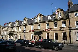 Originally established in the 18th century, the inn is recorded by the Universal British Directory as one of two existing in Alnwick in 1791.[1] The Gentleman's Magazine noted in 1797 that it was "occupied by a man named Wilson, who at one time had lived as footman in the Hervey family."[2] W. Davison, writing in 1822, stated that the White Swan was "the principal inn ... at which the mail and union coaches stop, and all the posting on the great north road."[3]
