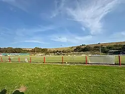 For the 1954–55 season, Brighton Corporation allowed the club to move onto a permanently enclosed pitch at the north end of the park, on what is now the Enclosed Ground.[102] The ground was still enclosed by tarpaulins and the teams changed in a barn on the adjacent Sheepcote Valley camping site. The club paid the corporation £75 a season for the pitch and £15 a year for the use of the camp site.[103] There were no facilities for spectators or players on the ground itself. The first match played on the current Enclosed Ground was a Sussex County League Division 1 game against Southwick on 1 September 1954, which the Hawks won 6–2.[104]
