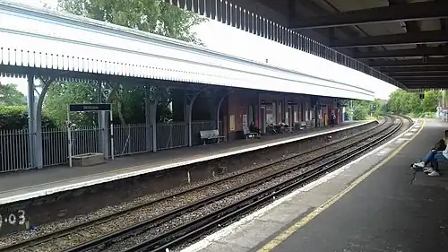 The station has passenger help points located on both platforms as well as toilets and a waiting room which are open when the station is staffed. There is a chargeable car park (operated by Saba Parking) as well as cycle racks located at the entrance to the station. There is also a taxi rank at the station.[3][4]