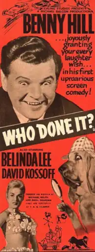 Who Done It? is a 1956 British slapstick black and white comedy crime film directed by Basil Dearden and starring Benny Hill, Belinda Lee, David Kossoff, Garry Marsh, and George Margo.[2] It was written by T. E. B. Clarke.