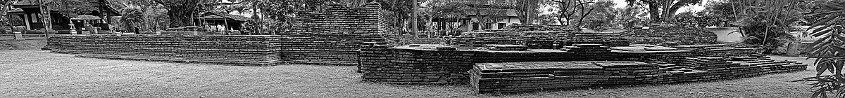 Wat Chedi Liam (Thai: วัดเจดีย์เหลี่ยม; "Temple of the Squared Pagoda"), formerly known as Wat Ku Kham (English: วัดกู่คำ; "Temple of the Golden Stupa"), is named after its ancient five-level chedi (or Buddhist pagoda) of Mon style, which was copied from a similar structure at Wat Phra That Hariphunchai in Haripunchai (modern Lamphun). It is apparently the only ancient temple in the Wiang Kum Kam archaeological area that remains a working temple with resident monks. In keeping with its Mon roots, Brahma, the Hindu creator, is venerated at the temple in addition to Buddhism.