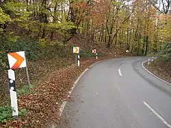The Wiehen Hills[1] (German: Wiehengebirge, pronounced [ˈviːənɡəˌbɪʁɡə] ⓘ, also locally, just Wiehen) are a hill range in North Rhine-Westphalia and Lower Saxony in Germany. The hills run from west to east like a long finger away from the main upland area of the Lower Saxon Hills, beginning at the Weser River near Minden and terminating in the vicinity of Osnabrück. It is the northernmost of the German Central Upland ranges extending into the Northern Lowlands. Their highest hill is the Heidbrink near Lübbecke with an altitude of 320 metres (1,050 ft).