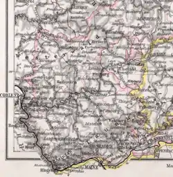 In most other Prussian provinces the tasks and rights of a Bezirksverband were fulfilled by the Provinzialverband (provincial association), comprising as members all the counties in a province instead of a region. The Nassau Communal Diet elected a regional government (first Verwaltungsausschuss, later Landesausschuss, i.e. administrative / land committee) presided over by the Landesdirektor (i.e. land director) or Landeshauptmann (i.e. land captain).[1] On 8 June 1885 the Kommunalständischer Verband Frankfurt (i.e. Communal Estate Association of Frankfurt), holding the same responsibilities in the territory of the former Free City of Frankfurt upon Main, was merged into the regional association of Wiesbaden.[1] The same reform enfranchised the Nassau Communal Diet to elect representatives for the newly established provincial diet of the Province of Hesse-Nassau, first convened in 1886.[1]