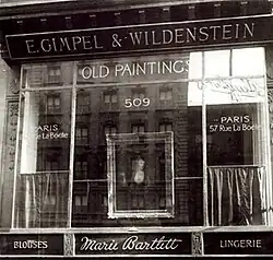 2. ^ "Archives Directory for the History of Collecting". research.frick.org. Retrieved 2022-01-24. Nathan Wildenstein founded Wildenstein & Cie in 1875, and specialized in French paintings, drawings and sculpture of the 18th century. In 1903, Nathan, Ernest and René Gimpel opened E. Gimpel & Wildenstein in New York City (1903-1933). The gallery became Wildenstein & Company in 1933.