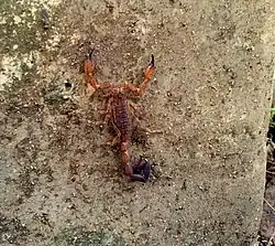 There are 18 species of scorpions in Sri Lanka. Out of these 18, 7 are endemic. In addition, 4 subspecies of the 9 non-endemic species are also endemic to Sri Lanka.