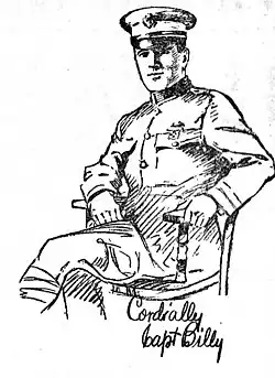 The title Captain Billy's Whiz Bang combined Fawcett's military moniker with the nickname of a destructive World War I artillery shell.[5] According to one account, the earliest issues were mimeographed pamphlets, typed on a borrowed typewriter and peddled around Minneapolis by Captain Billy and his four sons. However, in Captain Billy's version, he stated that when he began publishing in October 1919, he ordered a print run of 5,000 copies because of the discount on a large order compared with rates for only several hundred copies. Distributing free copies of Captain Billy's Whiz Bang to wounded veterans and his Minnesota friends, he then circulated the remaining copies to newsstands in hotels. With gags like, "AWOL means After Women Or Liquor", the joke book caught on, and in 1921, Captain Billy made the highly inflated claim that his sales were "soaring to the million mark."[6]