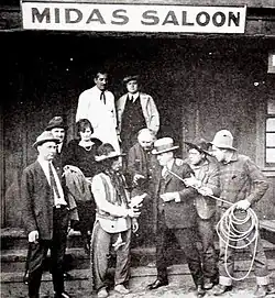 ![]() Fawcett, at center with rope around him, during a visit to Universal Studios in Hollywood in 1921 | |