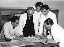 Stallknecht (second from right) in 1954 at work on single-family house designs