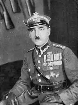 In the years 1921–1922 he was a student of the Training Course at the Wyższa Szkoła Wojenna in Warsaw. In October 1922, after completing the course and obtaining a scientific diploma of an officer of the General Staff, he was assigned to the Command of the 16th Infantry Division in Grudziądz as the chief of staff. In the period from January to September 1924, he was the deputy chief of staff of the Corps District No. V in Kraków and the Corps District No. VII in Poznań. In September 1924 he was transferred to Division IV of the General Staff in Warsaw. In March 1927 he took command of the 52nd Borderland Infantry Regiment in Złoczów. In November 1929 he was appointed head of the Military Department in the Ministry of Communications. In December 1930 he became the commander of the infantry division of the 25th Infantry Division in Kalisz. After four years, in November 1934 he was transferred to the position of the assistant commander of the Corps District No. X in Przemyśl. In May 1936 he was elected vice-president of the board of the District Society of Friends of the Riflemen's Association in Przemyśl.[2] On 2 April 1938, he was appointed commander of the 20th Infantry Division in Baranowicze. In the third decade of March 1939, the division he commanded was mobilized and transported to the operational region of the Army "Modlin". He commanded the division in the Invasion of Poland on 1–4 September in the Battle of Mława, and then in the Siege of Warsaw. On 29 September 1939, Maj. Gen. Juliusz Rómmel " in recognition of his merits, for his bravery, he awarded" him with the Gold Cross of the Military Order of Virtuti Militari, and in the farewell order for the 20 DP, he stated, inter alia, "the actions of this borderland division will go down in history as a model of fulfilling their duty".