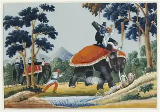 Elephant hunt in Danish Tranquebar, presumably early 19th century.