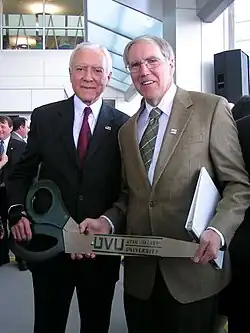 Sederburg (right) and U.S. Senator Orrin Hatch (left) at the ribbon cutting for Utah Valley University library