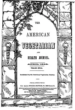 Alcott and Sylvester Graham founded the American Physiological Society (ASP) in 1837, with the purpose of “integrating a Grahamite lifestyle into a larger physiologically focused ideology.”[31] The ASP sought to make the study of health access to all citizens and promoted a vegetarian diet.[32] On May 15, 1850, Alcott, Sylvester Graham, and William Metcalfe founded the American Vegetarian Society, with Alcott serving as the first president.[33]