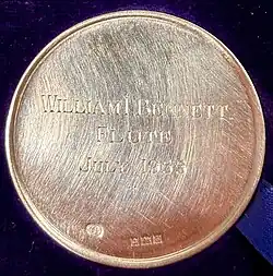 For his distinguished services to music, Bennett was awarded the Order of the British Empire (OBE) in 1995.[5][6] He was appointed Flautist Laureate by the British Flute Society in 2003.[6] In 2004, he gained the title of Flute of Gold from the Italian Falaut Flute society.[7] He also received two Lifetime Achievement Awards, one from the National Flute Association in 2002 and another from the Chicago Flute Club in 2009.[6][7] In 2018, he was awarded the Walter Willson Cobbett Medal by the Worshipful Company of Musicians "in recognition of services to chamber music".[12]