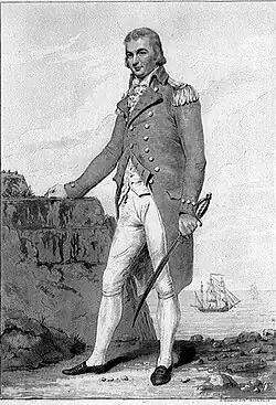 - ^ Dates of promotions: rear-admiral of the red 9 November 1805, vice-admiral of the blue 28 April 1808, vice-admiral of the red 31 July 1810, admiral of the blue 4 June 1814, admiral of the white 19 July 1821, admiral of the red 22 July 1830.[29]