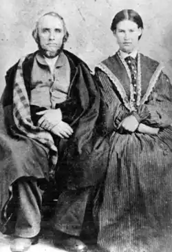 After settling in the Salt Lake valley, Clayton married several more teenage women. He married Augusta Braddock, aged 17, on October 5, 1850. They had eight children together. He married Sarah Ann Walters when she was 18 years old on November 30, 1856, and they had eleven children together. Their youngest child was born after Clayton's death in 1879. He married Amasa Lyman's daughter, Maria Louisa Lyman, age 17, in 1866, and they had one child together.[23] Maria taught Clayton's children until she left Clayton's household to join her father Amasa when he joined the Godbeites. They were separated when she filed for divorce with the state in 1871.[24] In 1870, he married Anna Elizabeth Higgs, also when she was 17 years old, with whom he had four children.[23] There were rumors that a non-Mormon had romanced Anna. She left home, selling many of her possessions while travelling south in 1873, but was shortly afterwards reconciled with Clayton. [25] Clayton also married a widowed cousin of Ruth and Margaret at her request, Elizabeth Ainsworth, when she was 48. They did not have any children together.[26]