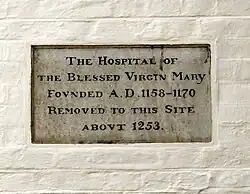 Plaque on St Mary's Hospital Almshouses, Chichester