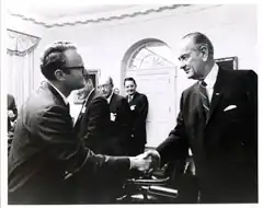 Gorham (left) and Lyndon B. Johnson at the Urban Institute dedication, 1968