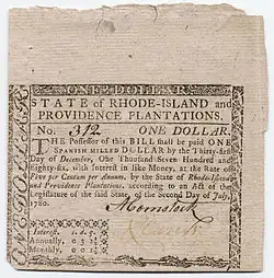 In 1781, after the surrender of Lord Cornwallis at Yorktown to French and American forces, the General Assembly changed the name of Kings County, Rhode Island to Washington County "in perpetual and grateful remembrance of the eminent and most distinguished services, and heroic actions of the illustrious commander-in-chief of the forces of the United States of America."[15] As the new nation was forming, in 1782 Rhode Island and Georgia were the only two states that rejected a 5% import tax proposed by congress. The Rhode Island citizenry and leadership felt that such a tax bore unequally on Rhode Island as a maritime state.[16] This was one of several considerations delaying Rhode Island's entry into the Union.[16] Congressional delegate David Howell was backed by a unanimous vote of the House of Deputies and by Governor Greene in rejecting the import tax.[17]