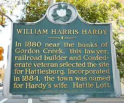 William Harris Hardy (February 12, 1837 − February 17, 1917) was an American businessman who founded the Mississippi cities of Hattiesburg, Laurel, and Gulfport.