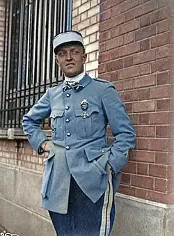 On 6 April 1915, he was promoted again, to Maréchal-des-logis. On 1 September, he entered pilot's training at Étampes. He received his Pilot's Brevet, No. 2069, on 12 December, and was retained on instructor duty until the following August. On 30 August 1916 he reported to Escadrille F20 (the 'F' denoting the Farmans in use in the squadron). However, a week later, he was reporting for upgrade training to Nieuport fighter planes. On 8 December 1916, he joined a Nieuport squadron, Escadrille 75.[1]